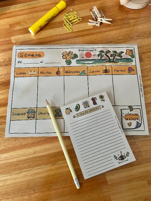 Planificador semanal (perpetuo) para escritorio o heladera 📒 Ilustrado a mano.