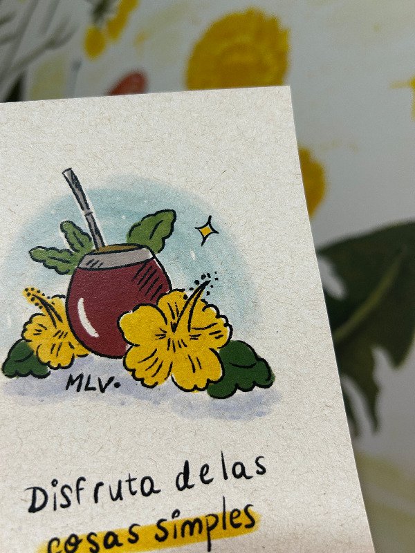 Postal con ilustración "Disfruta de las cosas simples de la vida" realizada a mano por mlvvirtual, impresa sobre cartulina reciclada de 300 grs, color natural.